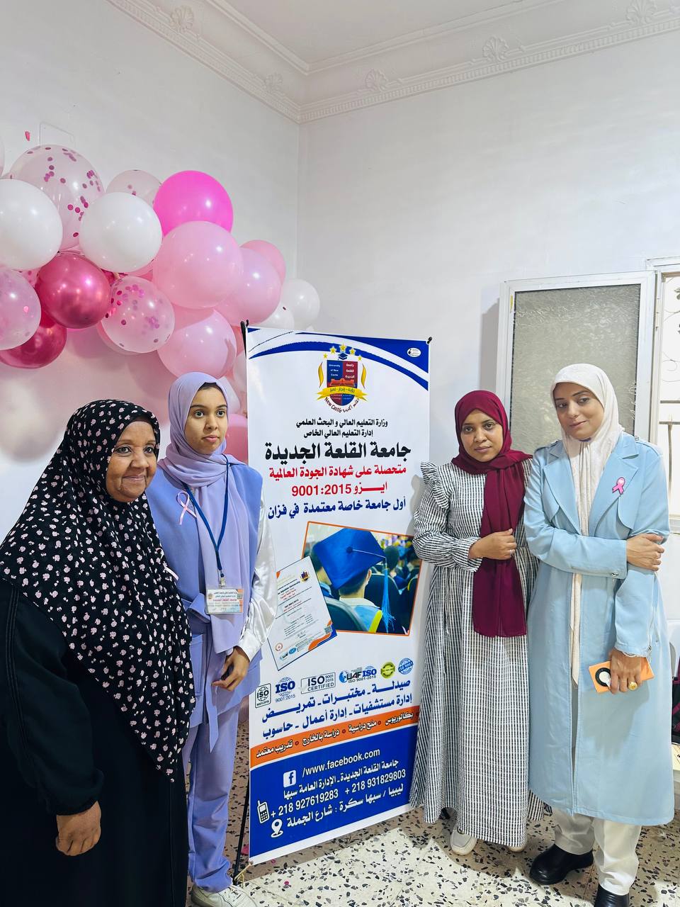 جامعة القلعة الجديدة الأهلية تستضيف ورشة عمل توعوية حول سرطان الثدي بالتعاون مع وزارة الصحة. ضمن فعاليات شهر أكتوبر للتوعية بسرطان الثدي، وفي إطار التزام جامعة القلعة الجديدة الأهلية للعلوم الطبية والتطبيقية بدورها في خدمة المجتمع المحلي، استضافت الجامعة يوم الأحد الموافق 19 أكتوبر ورشة عمل توعوية بعنوان:
